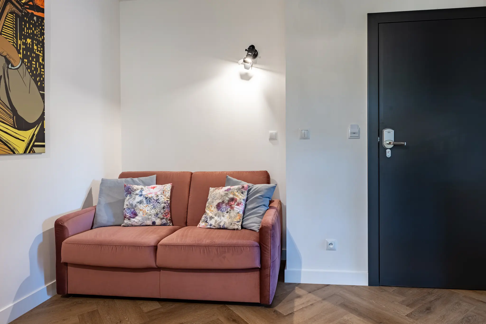 Czym byłoby nasze życie bez muzyki? Z tego względu na Zamku nie mogło zabraknąć apartamentu Muzyka. Oświetlenie i grafiki sprawiają, że niemal słyszymy jazzową synkopę i wysoki sopran divy. Apartament wyposażony jest w sypialnię z dwuosobowym łóżkiem, pokój dzienny z rozkładaną kanapą (wyposażoną w bardzo wygodny materac) wraz z aneksem kuchennym, werandę z widokiem na dolinę Podgórnej wraz ze starodrzewiem i skały oraz w łazienkę z prysznicem.
